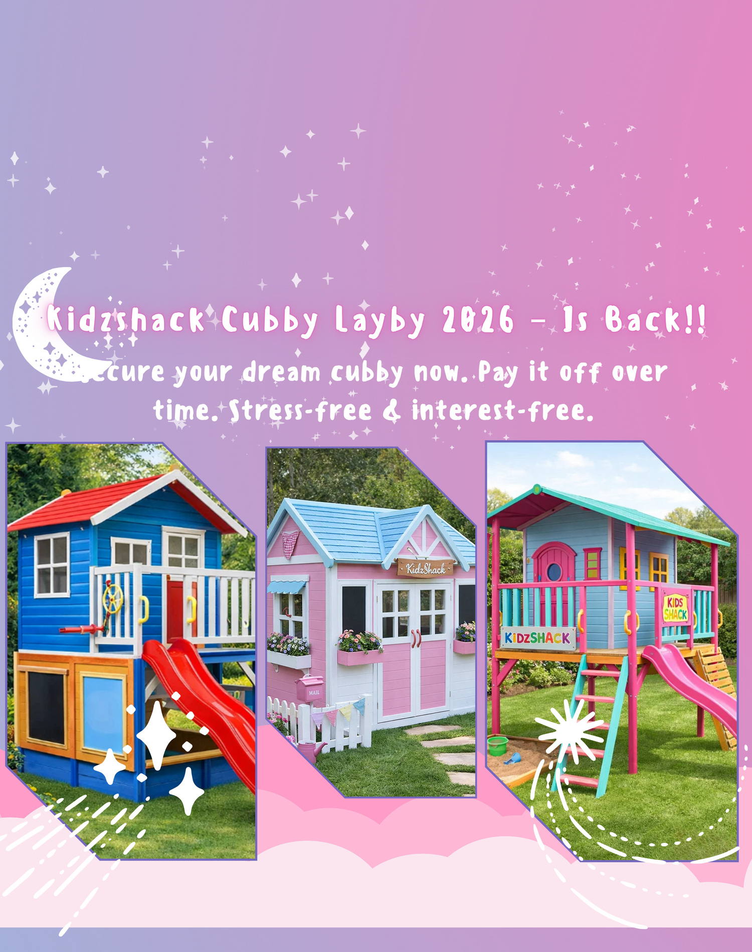 KidzShack is a proudly Australian-owned, family-run business that has been inspiring outdoor play since 2014.Founded by Emma, a dedicated mum of two, KidzShack was born from a simple but powerful idea: to make fun, affordable, and high-quality outdoor play equipment accessible to more families. While pregnant with her second child, Emma searched for a cubby house for her toddler, only to find overpriced products that could only be viewed online. That frustration led to the creation of a local, family-friendly brand that puts families first.