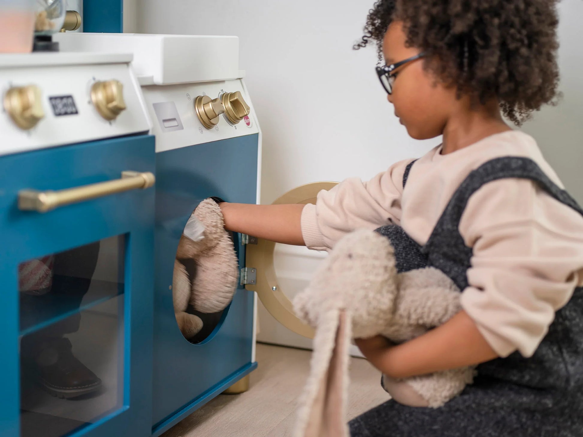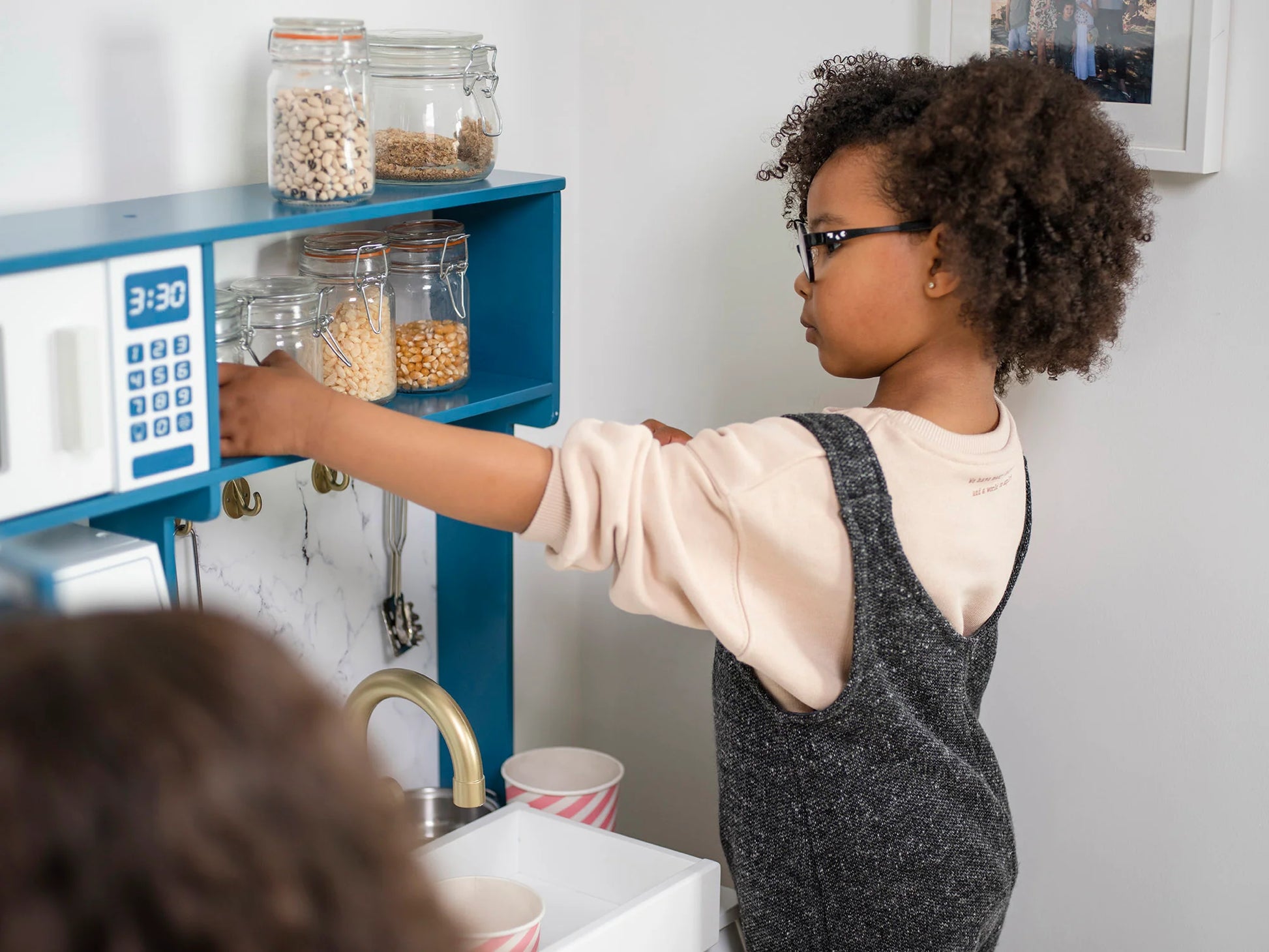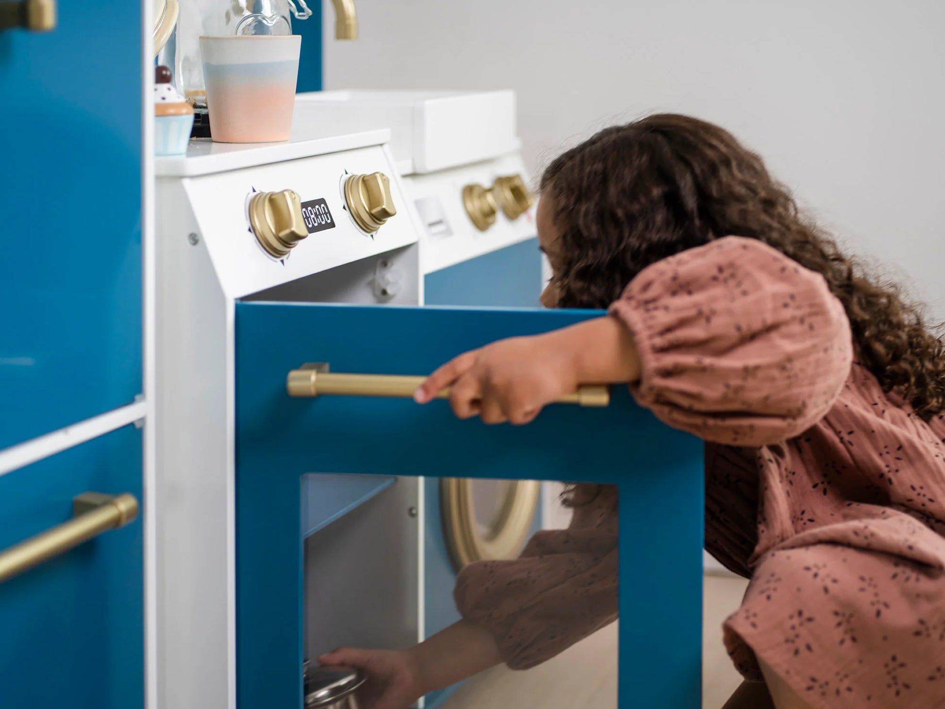 Plum® Bakehouse Traditional Wooden Kitchen with Fridge - Oxford Blue