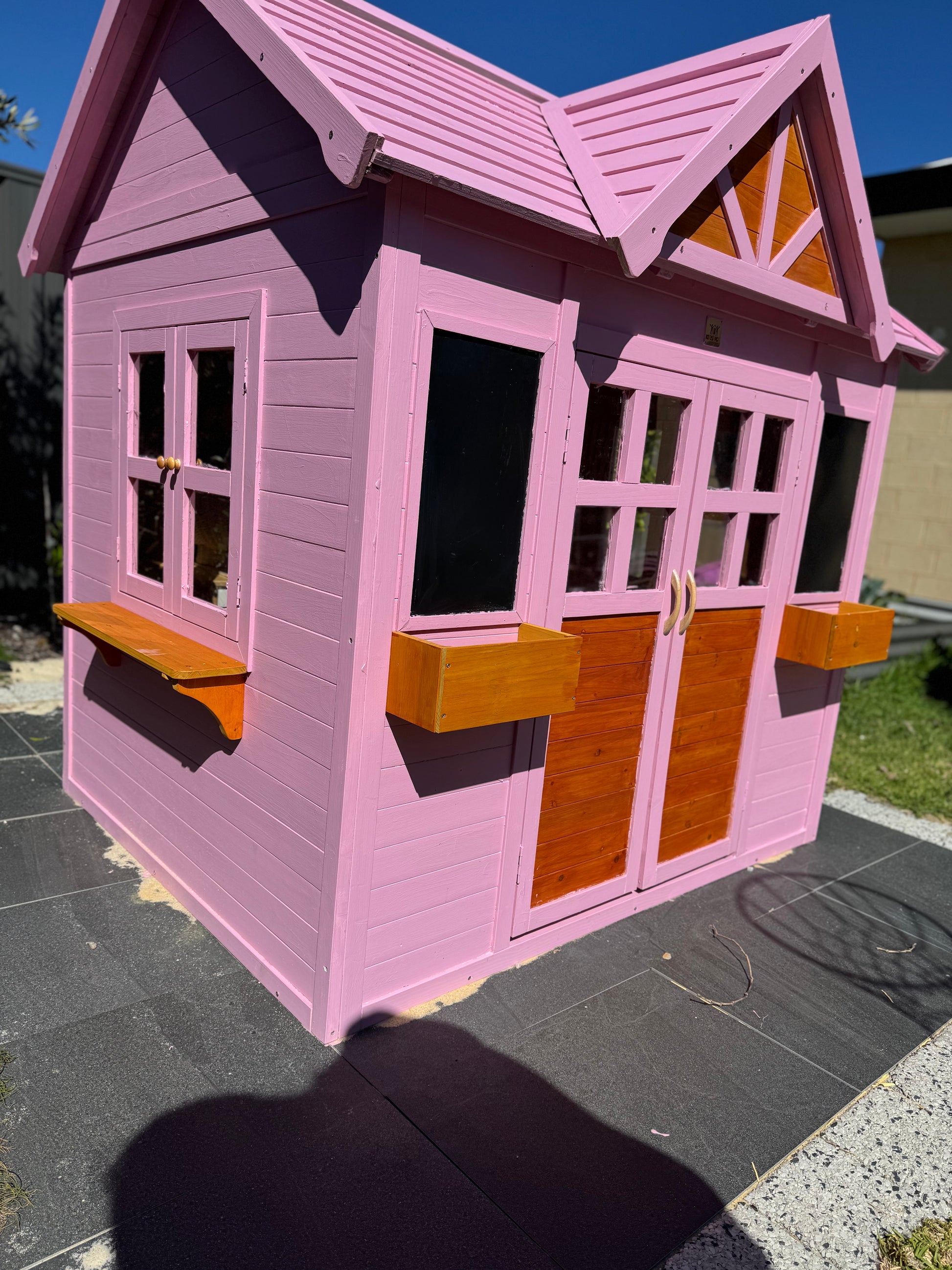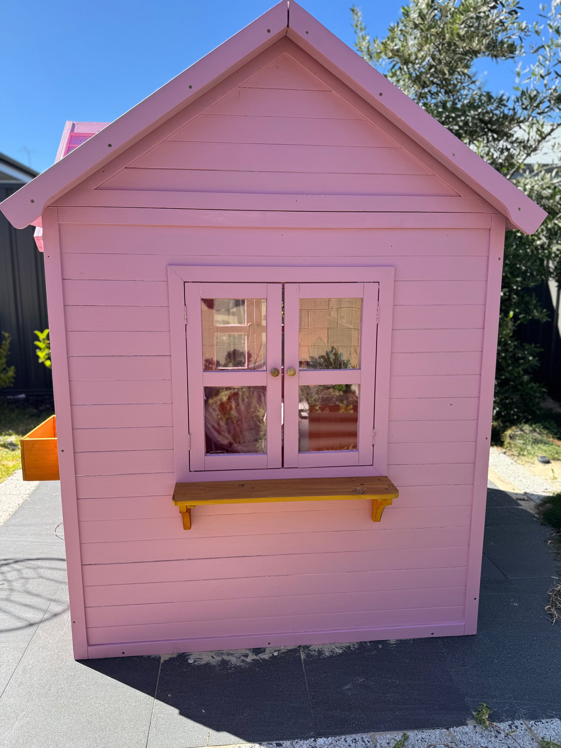 The Country Shack is a timeless ground-level cubby packed with charm. Featuring dual front doors, shop shelves, planter boxes, blackboards and an optional mud kitchen/sandpit add-on — it's designed for all kinds of outdoor play and creativity.