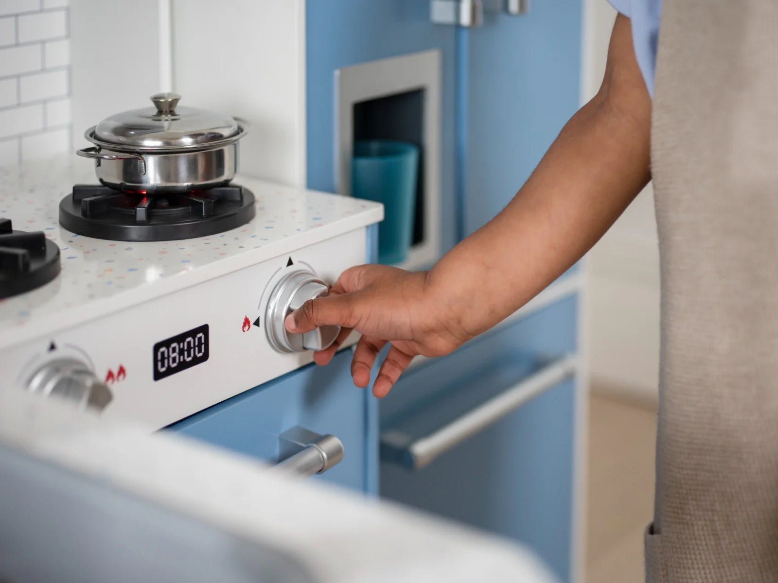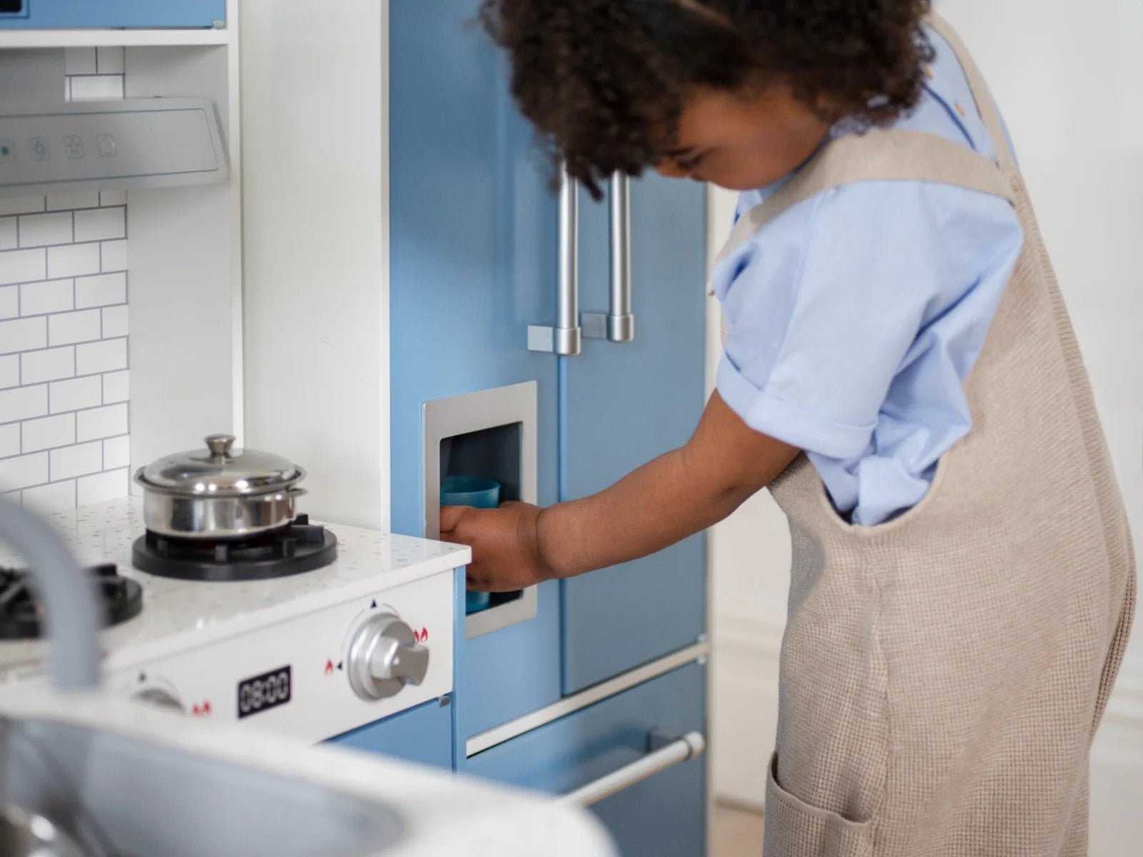 Penne Pantry Wooden Corner Kitchen with Fridge – Berry Blue NEW
