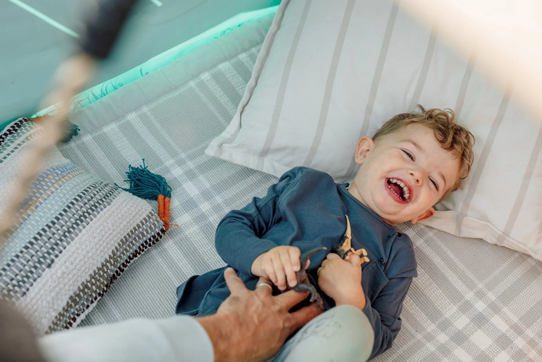 Secret Den Area: A cozy shaded space underneath for quiet play or hiding away